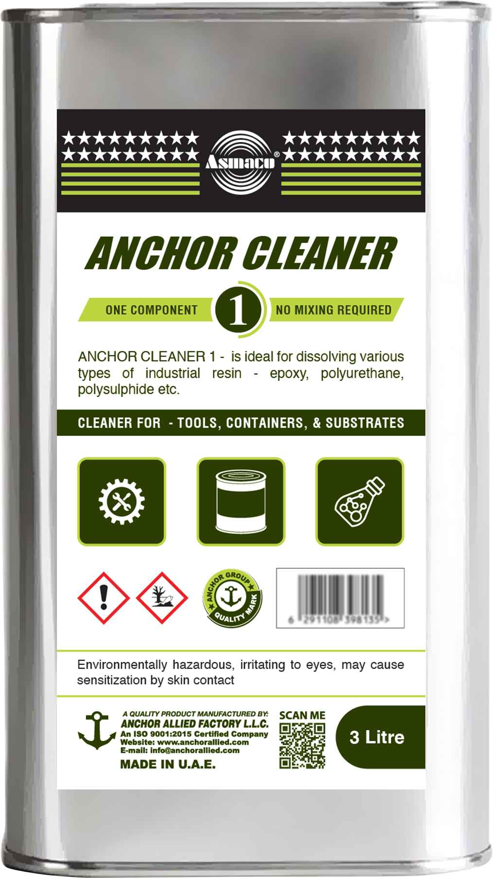 ANCHOR CLEANER 1 идеально подходит для растворения различных типов промышленных смол — эпоксидных, полиуретановых, полисульфидных и т. д. Его можно использовать в качестве очистителя для инструментов, контейнеров и подложек. ANCHOR CLEANER 1: Для очистки инструментов лучше всего налить немного в контейнер и чистить принадлежности в этом контейнере. Для очистки подложек ANCHOR CLEANER 1 можно наливать напрямую или наносить с помощью ткани или бумаги.