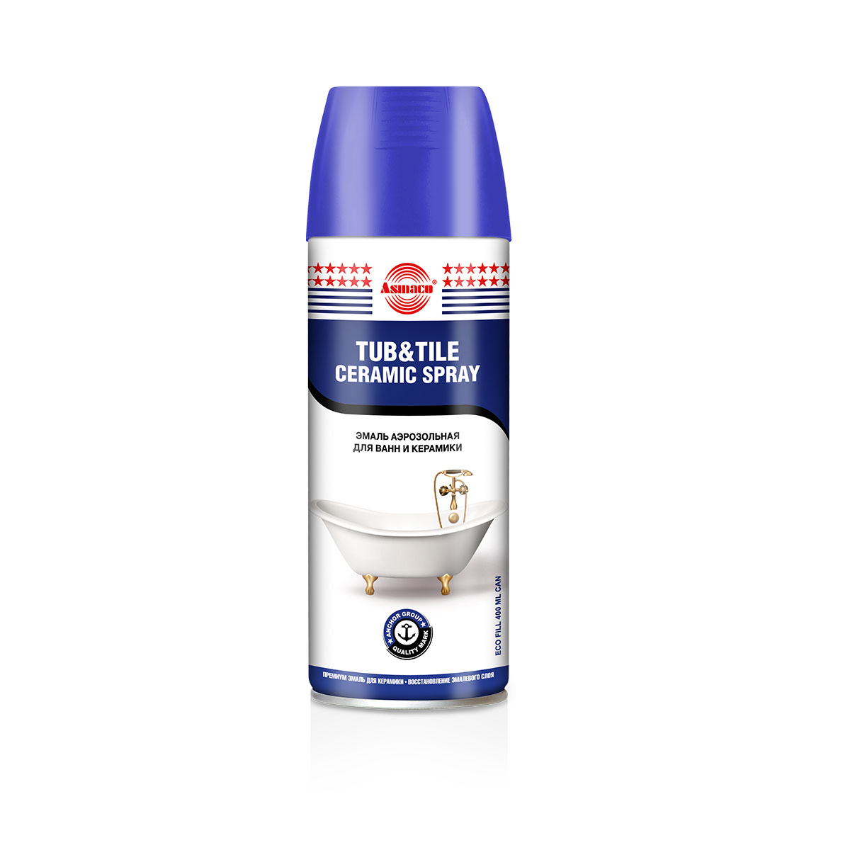 ASMACO TUB & TILE CERAMIC SPRAY — это одношаговая акриловая краска-спрей, разработанная для обеспечения превосходной адгезии, долговечности и сохранения цвета в помещениях с высокой влажностью. Это гладкое, глянцевое, водостойкое покрытие подходит для использования на плитке, раковинах и ваннах. Идеально подходит для реставрации и покрытия ванн, умывальников, кухонных моек. Также может использоваться на дереве, металлах, пластике, в автомобильной промышленности и т. д. Быстросохнущая и гладкая формула покрытия идеально подходит для внутреннего и наружного применения. Не выцветает, не желтеет, устойчива к погодным условиям и термостойка до 100 °C и не содержит ХФУ.